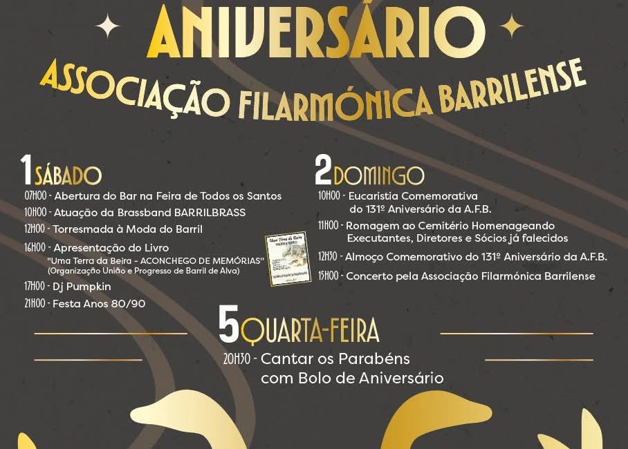 1, 2 e 5 Novembro – Aniversário da Associação Filarmónica Barrilense (sede da Associação)